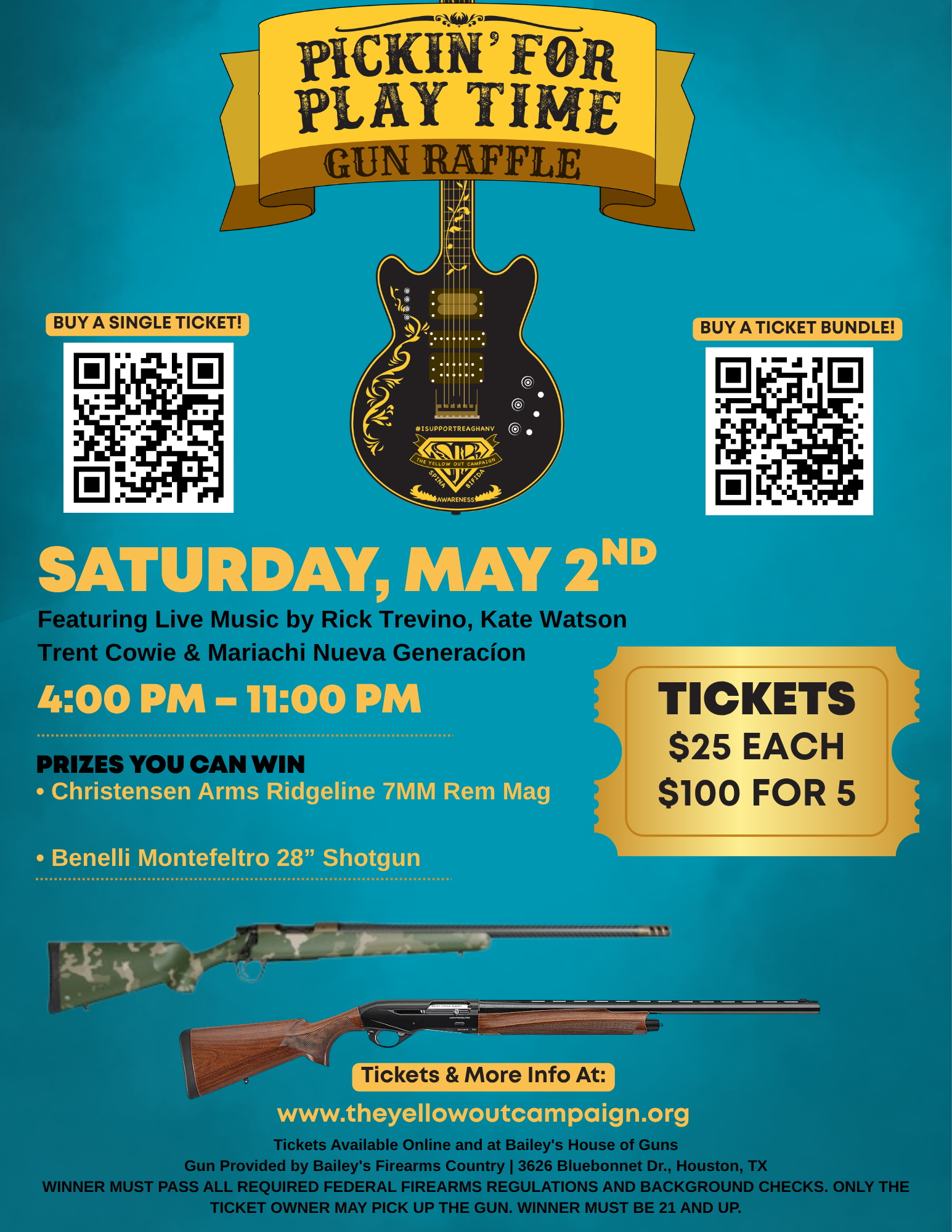 Single (1) General Admission Ticket to Pickin’ for Play Time on Saturday, May 2nd at Silver Sycamore in Pasadena, TX.